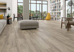 Thiết kế phòng khách hiện đại đẹp thời thượng với gạch vân gỗ