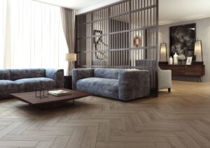 Thiết kế phòng khách hiện đại đẹp thời thượng với gạch vân gỗ