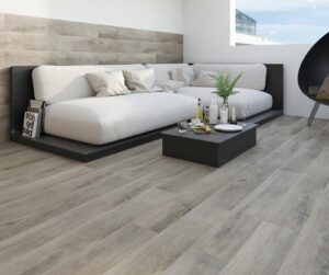 Thiết kế phòng khách hiện đại đẹp thời thượng với gạch vân gỗ